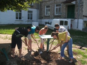 Membrii grupului de iniţiativă au început activitatea lor prin demontarea meselor metalice uzate din curtea liceului. În curînd vor aduce cîteva remorci cu ciornoziom pentru a nivela terenul şi a-l pregăti pentru următoarele lucrări. Locul se amenajează pentru plantarea materialului săditor (flori, arbori şi arbuşti), în dependenţă de condiţiile meteo favorabile. Tinerii implicaţi în acţiune au manifestat interes chiar în perioada vacanţei şi mîndrie pentru faptul că pot contribui la schimbarea aspectului curţii instituţiei unde îşi fac studiile.