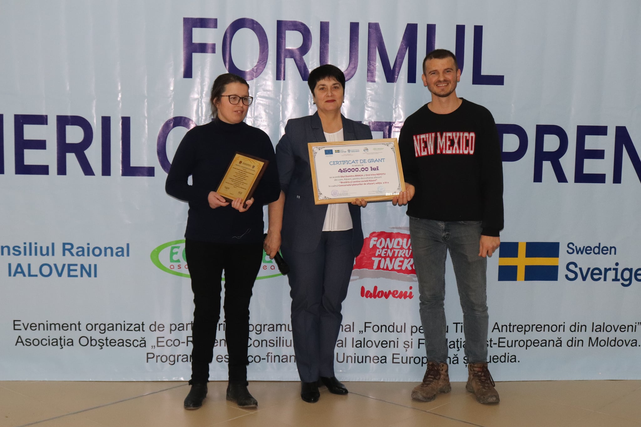 Deoarece au beneficiat de suportul necesar în cadrul primei runde de granturi pentru tinerii antreprenori din anul 2019, echipa: Nicolae Vutcariov și Ioana Enachi din s. Nimoreni, au venit la forum și au prezentat rezultatele planului de afaceri “Univers Cleo” SRL, domeniul de activitate: salon de frumusețe și frizerie, pentru a stimula entuziasmul și perseverența tinerilor înzestrați cu spiritul de echipă și de întreprinzător.