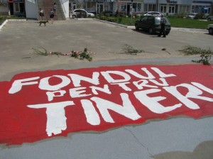 Deja, la 19 iulie cei care au trecut prin preajmă au observat că pe o suprafaţă de aproximativ 50 m2 au apărut culori vii pe asfalt care formează logoul „Fondul pentru Tineri”. Acţiunea a fost autorizată de Primăria Ialoveni şi este parte componentă a campaniei de sensibilizare a locuitorilor raionului despre existenţa programului şi promovarea iniţiativelor tinerilor cu spirit civic dezvoltat. Ideea a prins viaţa şi datorită suportului financiar oferit de Fundaţia Est-Europeană din Moldova.